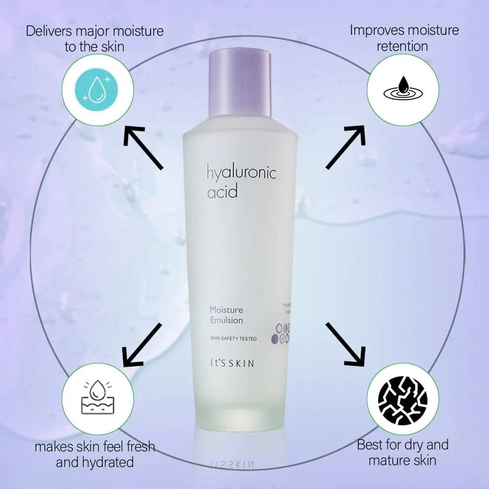 Το emulsion με υαλουρονικό οξύ της It’s Skin με εκχύλισμα φυτών καταπραΰνει και θρέφει το δέρμα σας, εξομαλύνοντας τους πόρους, τις λεπτές γραμμές και τις ρυτίδες!
